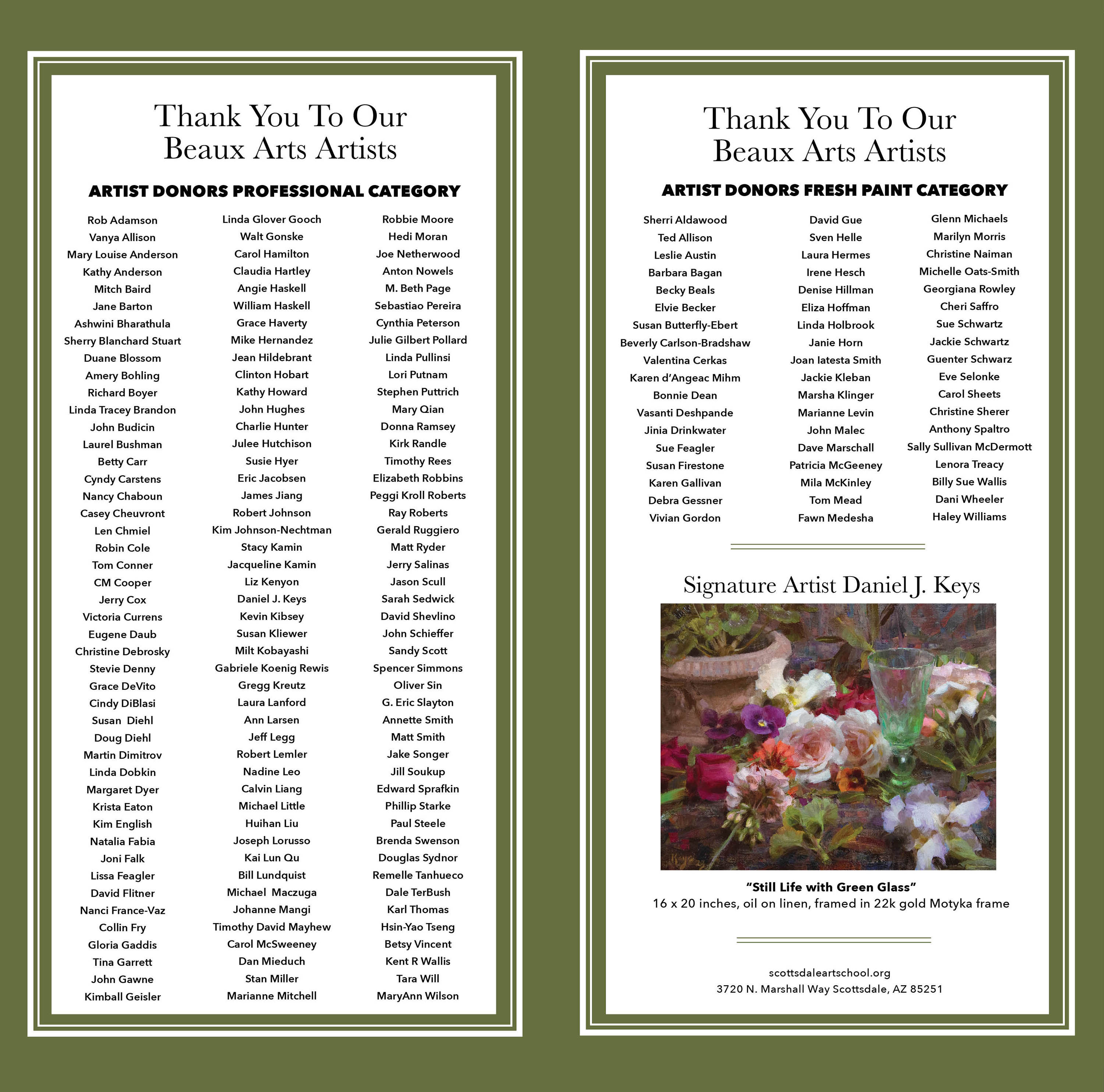 Scottsdale Artists’ School extends heartfelt thanks to everyone who joined us for Beaux Arts 2025. An unforgettable celebration of creativity, community, and generosity. This year’s event brought together artists, collectors, sponsors, and art enthusiasts from near and far to support the School’s mission of keeping fine art education thriving for generations to come. We are deeply grateful to all who attended, volunteered, donated, and bid online. Your commitment to supporting art education ensures that the spirit of creativity continues to flourish at Scottsdale Artists’ School.